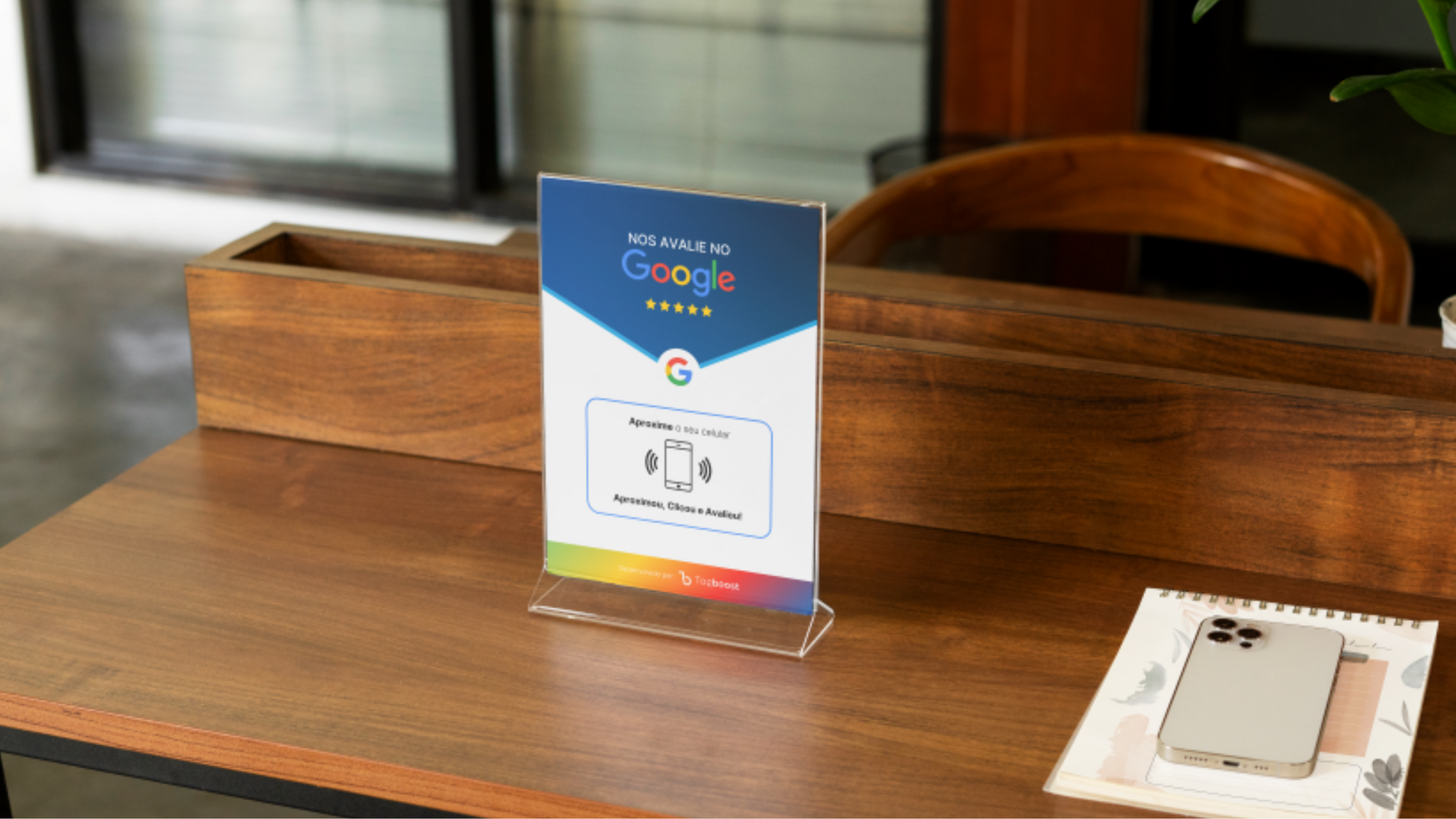 O segredo do sucesso é a visibilidade! Posicionada em um local estratégico como o balcão, caixa ou na saída da sua loja, nossa plaquinha se torna um convite impossível de ignorar. Ela transforma a satisfação do seu cliente em uma avaliação positiva em segundos. Basta aproximar o celular (NFC) ou escanear o QR Code para serem direcionados instantaneamente para sua página de avaliação.